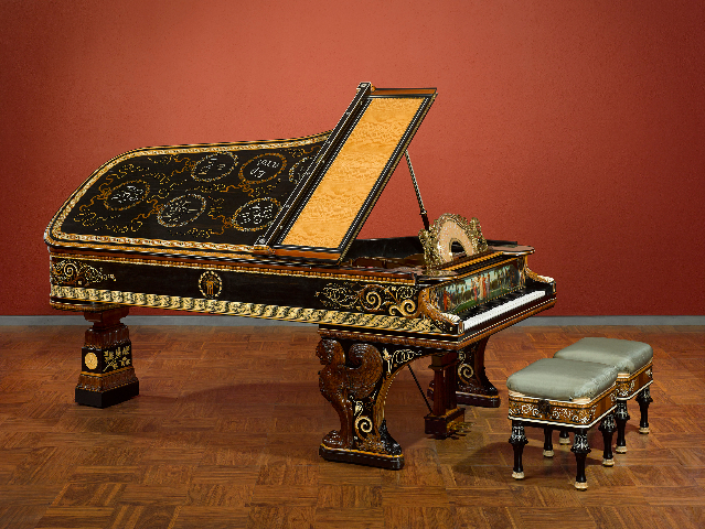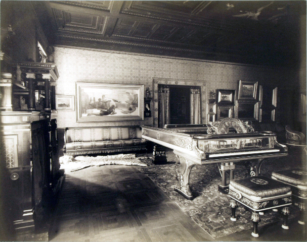 The case for the instrument was shipped to the artist's studio. When finished it was sent back to the Steinway company in New York where the instrument was inserted. It was then installed in the music room of Marquand's mansion.