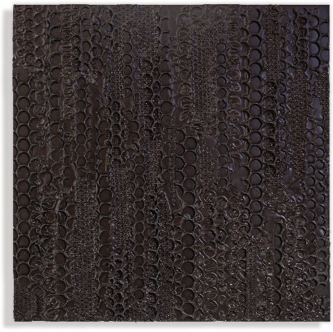 Violet Nocturne 2 (2019) by Nicole Chesney is a deliberate attempt to evoke the feeling of moodiness and the deep range of tones associated with the night sky. Wisps of paint sit atop a surface of glass--absorbing rather than reflecting its surroundings.