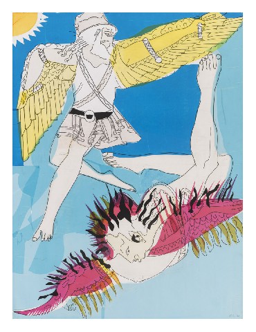 In the studio he developed a manner of stripping to the barest essentials a series of compelling, witty collages that catapult those ancient works into the brightly colored dynamics of contemporary art and design.