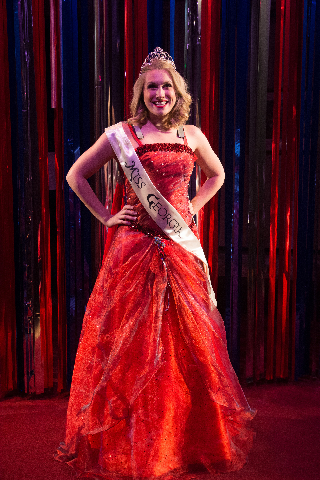 Then in a festive ball gown with suitable tiara Miss Georgia (Maddie Jo Landers) popped out singing a song that comically went on and on. An off stage announcer said it was time to move on to the next contestant. In a smarmy Southern manner this Miss America hopeful hogged the spotlight and craved our attention.