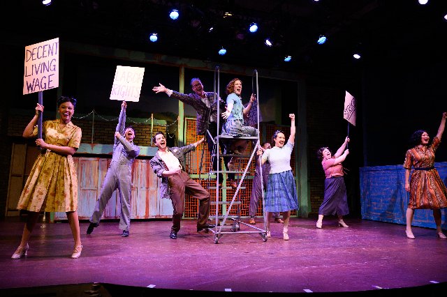 In addition to the good performances by the lead couple, the other major roles are well acted. Daniel Thomas, the producing company’s Executive Artistic Director, is Prez, the union head, who keeps failing to get the workers’ raise and who also has an eye for Babe. Nick Nakashima receives the most laughs as Hines, who worries about work and has a jealous streak. And Jesse Caldwell bounces to and fro, as he plays both the greedy boss, “Old Man” Hasler and empathetic Pops, Babe’s father, who is trying his best to get her married off.