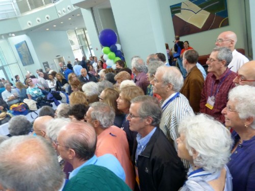 We lasted briefly in an aerobics class and decamped for the emotional roller coaster of a lecture on the pros and cons of Jewish assimilation. It again raised the specter of a complex Brandeis identity and heritage evoking a fascinating range of responses from the audience. Commenting on the tone and drift of the presenter one man stated “For me being a good Jew does not mean that I have to be a Zionist.” Another asked “When did assimilation become a dirty word?” There was speculation about how Jewish assimilation was different from that for the Irish, Italians, or Greeks? There were recollections to having those discussions formally and informally fifty years ago.