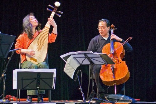 Today bows for the stringed instruments are made of horsehair. Some of Ma's strings were flying loose around the bow, and I wondered if they were made of silk to honor his group -- silk, the beautiful but fragile hair rarely used because it so easily falls apart. But then, it could have been the vigor of the performance that loosed horse hair, whipped around by a cellist whose connection between feeling and its expression is so intense.