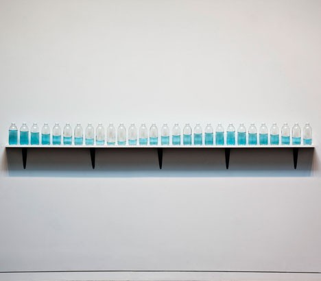 There are a lot of variations on generic bottles becoming less so by being arranged and filled or not with colored water.