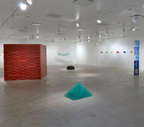 Or a stack of colored, plastic milk cartons.