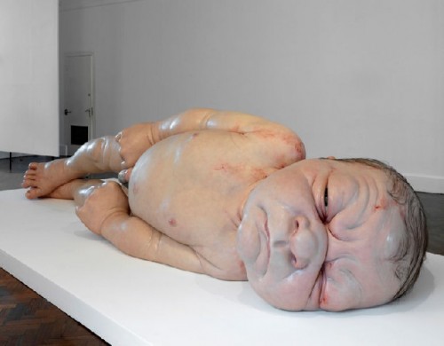 The exhibition begins with collages, reliefs and assemblages made by Cubist, Surrealist and Constructivist artists in the early 20th century, including masterpieces by Picasso and Man Ray. Other highlights from the first half of the century include Impressionist sculptures by Dégas and Rodin, as well as works by Barbara Hepworth and Ben Nicholson. Ron Mueck’s monumental work A Girl (2006) is the centerpiece of the show. This 5-meter mixed media sculpture of a newborn baby, rendered in great detail on an enormous scale, is part of a display devoted to Super-realist sculpture, which includes Duane Hanson’s celebrated Tourists. Other rooms illustrate the impact of Surrealism on sculpture of or about the human body, including works by Duchamp and Giacometti.