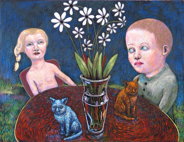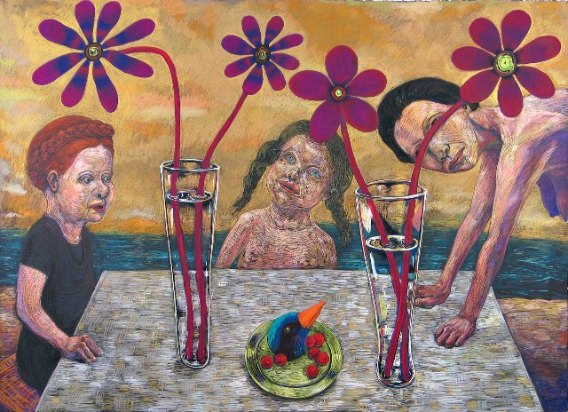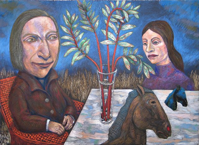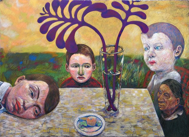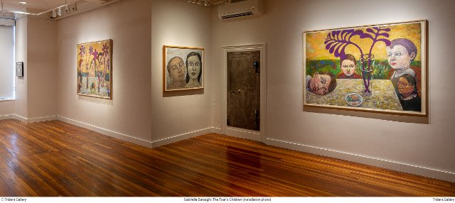 How I would love to talk with her about the new works “The Tsar’s Children” on view in Gloucester’s landmark Trident Gallery. Surely we would unravel the tapestry of memory like Penelope holding off suitors. Perhaps in a sense we all long for the return of brave Ulysses from that voyage of time, space and memory.