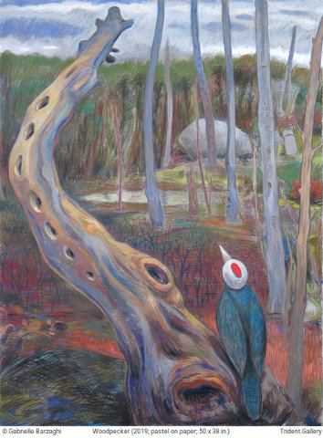 The figurative/ narrative artist, Gabrielle Barzaghi, lives deep in the woods just steps from a copse of ghosts in Gloucester’s legendary Dogtown Common.