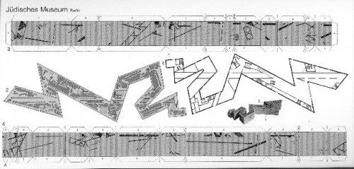 The zigzag form that defines the Jewish Museum's structure is pierced by a straight line. This line cuts through concrete shafts in the building. These spaces are partially inaccessible and linked by bridges. According to the architect, these symbolize the void which the extermination of Jewish life in Berlin has left.