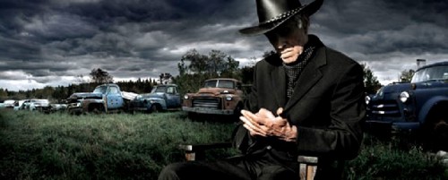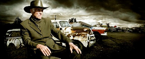 A drive-in has been converted into an automobile graveyard. An old man with a dramatically lined face, wearing a cowboy hat, watches time go by. An empty screen glimmers in the twilight sky amid the rusty old jalopies. A sign identifies the location of the drive-in, Val-d’Or. The four images are enormous, three metres high and over seven metres long, and they glow like film projections. As the artist explains, “The installation offers several simultaneous viewpoints on the visible yet imaginary territory conjured up by what the images represent. The spatial layout suggests the idea of ubiquity, and enables spectators to be present in different places at one and the same time.”
