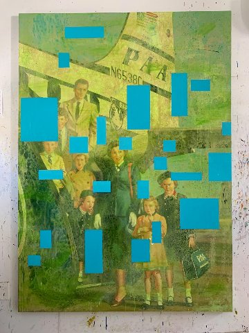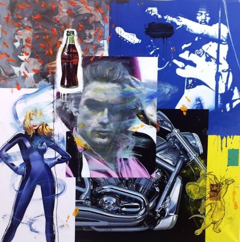 While what happens to transform an image is enticing, there is ever expanding iconography. Family has been a consistent theme. I have been intrigued to see what he has done with vintage snap shots of uncles or informal groupings of relatives. For a time he deconstructed 19th century salon paintings. The pop pictures conflated sex and consumerism with muscle cars and glistening chrome of choppers.