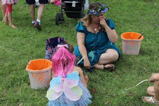 One tent was super busy with kids decorating faerie wings. At just five dollars they were selling like hot cakes. We enjoyed the spectacle of lots and lots of little faeries and elves. Most were small and adorable but we also interacted with some adult faeries and elves.