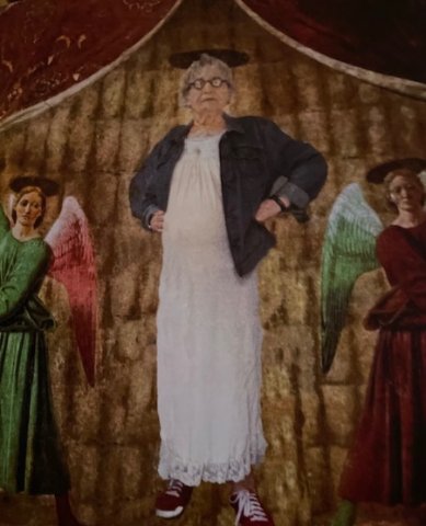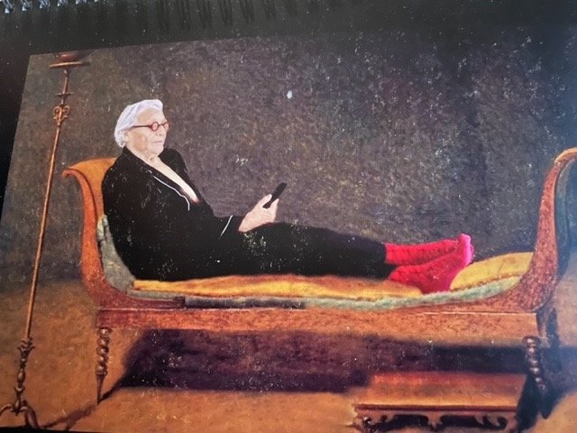 Susan Rennie says: “In 2005 I retired from academia and resumed my true avocation––photography, leading to three shows featuring my Venice neighborhood. In 2009 a big breakthrough came when I discovered the iPhone as an innovative art medium. This allowed me to go where I hadn’t imagined: synthesizing radical feminism with cultural creativity, digitally inserting a feminist self into the patriarchal world of classic western art––reversing the centuries of the male representation of women as objects of their desires and values, shaping my insertions of myself in a way that satirizes and taunts the male gaze.