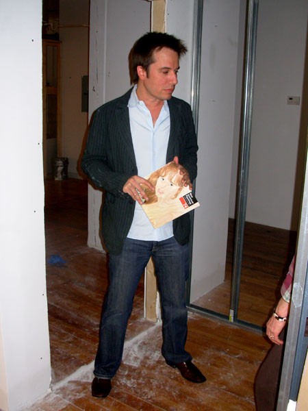It is always fun to run into my former Boston University art history student Steve Zevitas. He is the owner of Open Studio Press which publishes the regional, juried editions of New American Painting. That enterprise has "really taken off." For a time the artists featured in the book/ magazines were show in OSP Gallery which occupied some of the office space. Zevitas is moving down stairs to what was formerly the largest space on Thayer Street the Genovese Sullivan Gallery. That pioneering South End gallery has now departed. He took us on a tour of the build out which will open as the Stephen Zevitas Gallery. The work he represents will be independent of his publications.