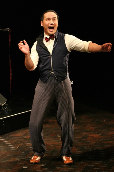 Knowing his work only from the long standing role of a psychiatrist on the TV show "Law and Order" (he won a Tony for the starring role in "M Butterfly") this performance in which he sings, dances and channels a cast of characters, old and young, male and female, from a small Southern town set during the Great Depression was beginning to be a wonder of talent and versatility. Yes, he had rolled down his pants. Wong wore a simple outfit of pants, shirt and a vest designed to hide the wires of an unobtrusive head set.