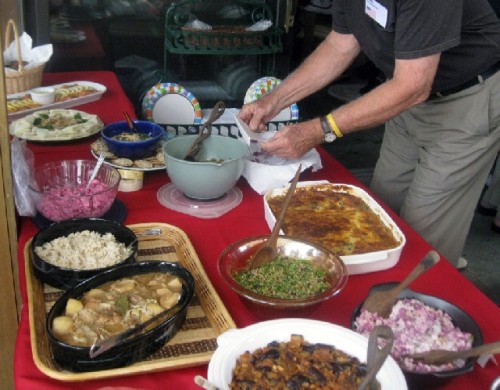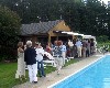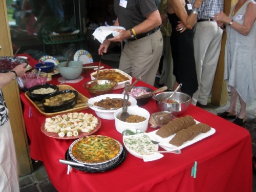 In a very German manner we sat around a table and shared a fabulous pot luck meal. The group included native speakers as well as less proficient spouses. I gamely tried to hold up my end of the discussion. It has been a great pleasure to know each other better. One of these German based gatherings was held at the home of the Austrian born Johanna Jenssen who hosted the Summer picnic around her back yard pool. There were some 70 members attending and sharing their international dishes. Yum.