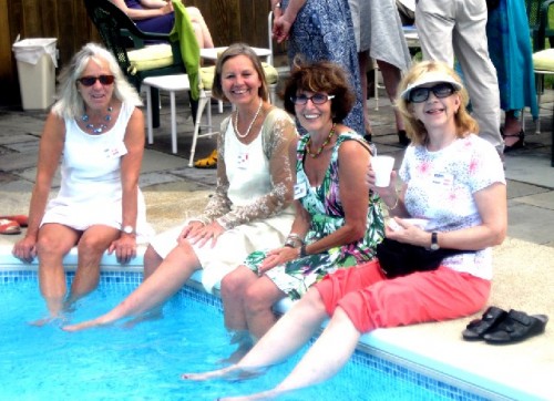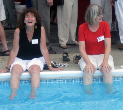 It was a steamy and humid afternoon. There were dramatic clouds and threats of rain that never happened. Many looked longingly at the cool and inviting pool. Eventually several women sat around the edge and dangled their legs in the water. What a refreshing moment.