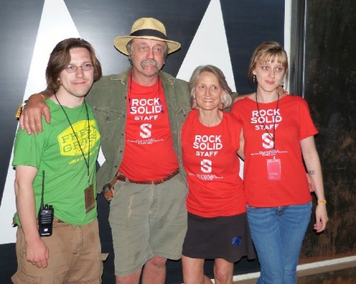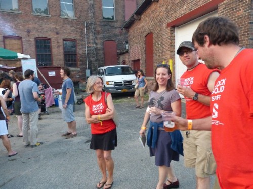 We ran into chief preparator Richard Criddle and his family for a group portrait. Always quick with a quip he described Mass MoCA as the “ Criddle family business.” His daughter, who makes fashions from the narrow strips of material used for Wilco wrist bands, runs the museum’s retail operations. Criddle’s son, a video artist, tours with Wilco. Not to be left out his wife, Debora, wearing a staff t-shirt, was helping in the store.