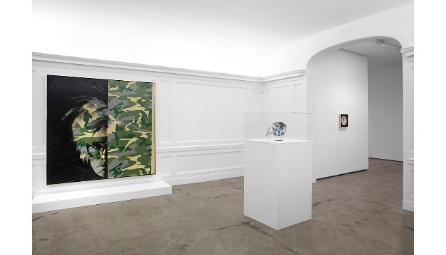 Entering The School evokes immediate compare and contrast. Straight ahead is Warhol’s witty, camouflage self portrait. A master of pop marketing he sold himself as a logo.