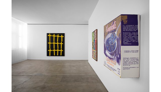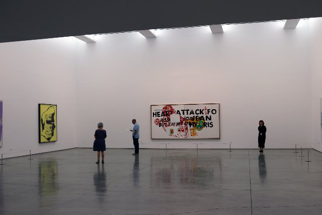 The epic Warhol is a huge “Last Supper” in black and white. It’s the scale of Leonardo’s but with logos superimposed.