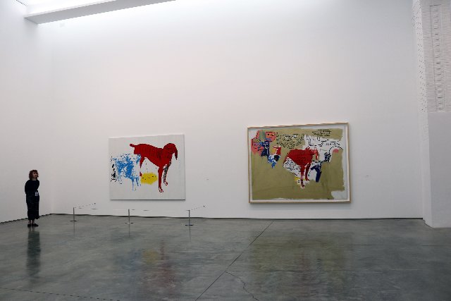 By contrast the instinct of Basquiat was for neo expressionism and a non traditional approach to materials. That entailed painting on found objects like the used door in this exhibition. His work conflated an outsider sensibility with an autodidacts’ knowledge of Western culture and art history. There is a flip flop between naïve and sophisticated.