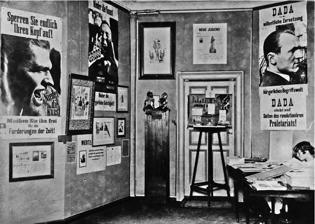 As creator of Merz, Kurt Schwitters is known for numerous collages with found material. He created his home as a site specific construction. Though not a direct participant in Berlin Dada’s activities, its ideas informed his work. He would later give Dada recitals throughout Europe on the subject with Theo van Doesburg, Tristan Tzara, Jean Arp and Raoul Hausmann. He was more in tune with Zürich Dada’s championing of performance and abstract art than Berlin’s agit-prop.