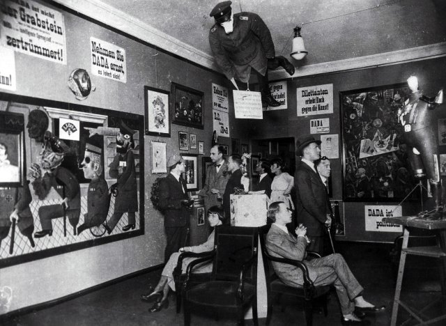 In Cologne, Maz Ernst, Johannes Theodor Baargeld, and Hans/Jean Arp launched a controversial Dada exhibition in 1920 which focused on nonsense and anti-bourgeois sentiments. Cologne’s Early Spring Exhibition was set up in a pub, and required that participants walk past urinals while being read lewd poetry by a woman in a communion dress. The police closed the exhibition on grounds of obscenity, but it was re-opened when the charges were dropped.