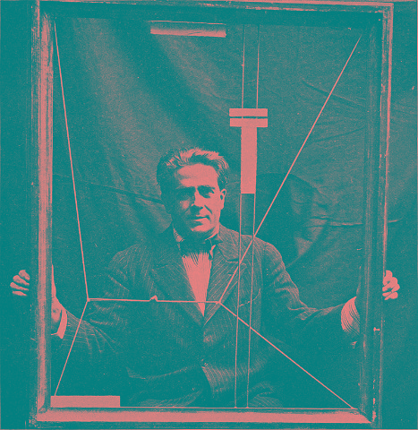 Johannes Baader (1875 – 1955) was a Dada artist and activist. For demonstrations he created giant collages which he then destroyed. In 1917 he was certified legally insane as a result of manic depression. He gave outrageous public performances parodying public and mythic identities and producing utopian designs of monumental, metaphysical, and messianic dimensions. In the same year he ran for office in the Reichstag in Saarbrücken. He would later become a leader in the German political party known as The Central Council of Dada for the World Revolution. Hausmann appointed him head of a society called Christus GmbH (Christ Ltd), which he formally founded as a legal company in 1917.