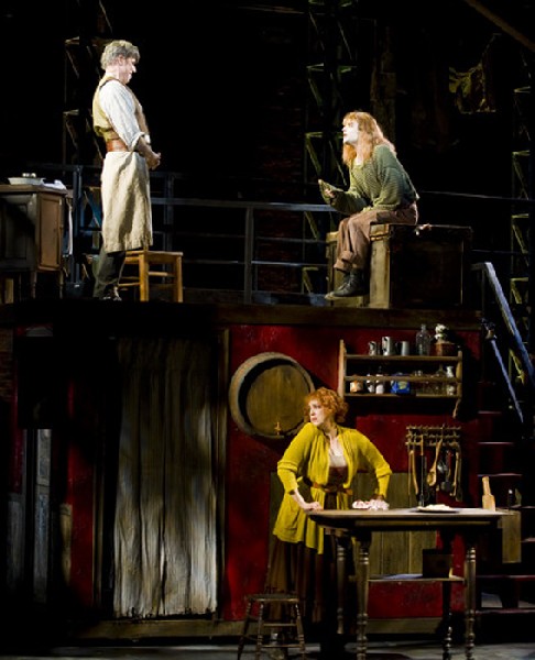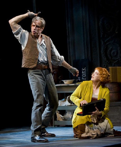 It is interesting to note that Sondheim’s grim portrait of the cruel and desperate underbelly of London at mid 19th century is a period portrait. Currently Britain is forced to cut back on the social entitlement programs that are bankrupting the national budget. Sweeny Todd informs us of an era before the dole. Children were thieves and beggars while women sold their bodies for a crust of bread. The downtrodden drowned their sorrows in gin. Those were tough times for the refuse of Colonialism and the detritus of the Industrial Revolution. There are few if any reddeming social values to Sondheim's bleak view of the human condition. The evil Judge Turpin (Ed Dixon) is a signifier for Great Britain and its cruel indifference to the suffering of the under class. That we "enjoy" the experience is an acquired taste and guilty pleasure. The master devilishly subverts us as conspiritors in the dark arts.