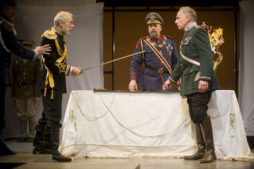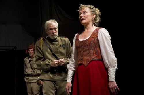 Much has been made in the pre-publicity of the decision of director Rebecca Holderness to set the action during the era of the Tsars in the Russia of 1906. Other than the gorgeous and inventive costume designs of Govane Lohbauer there was scant evidence of that time and place. The setting of Shakespeare’s Lear is not really Elizabethan. He borrowed the character of Lear from pre-British Celtic history. Lear is a universal tale not confined to a specific time and place.