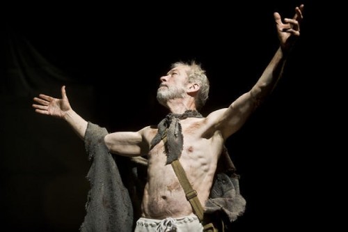 Reaching the arc of the role Lear must respond in rage to their insults. Like Oedipus plucking out his eyes, Lear condemns himself as a wretch in the wilderness. There, accompanied by his Fool, Lear is tended to by Kent (Jonathan Epstein) who he “blindly” banished. Kent returns in disguise to look after the king he remains loyal to.