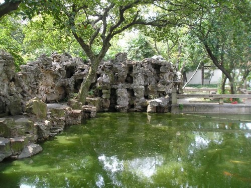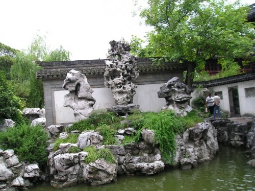 Visiting the Yu Gardens built in 1557, introduced us to the ancient Chinese design of Feng Shui. The opposing forces of yin and yang are aligned in such a way that soft and hard balance one another. Plants pair up with architecture, and water with rocks. Hard cobblestones complement wood structures. Generations of families watch over rock formations as they are shaped by nature and earn a living as "rock farmers". Others sell crafts, food, and souvenirs to tourists, including locals, by leasing space in buildings owned by the government. We walked around teahouses, pavilions and goldfish ponds, and were bemused by the opportunity to buy cheap imitation Rolex watches.