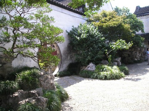 Declared a World Heritage Site by UNESCO in 1997, the Master of Nets Garden is one of these. Laid out 800 years ago, its center is a pond surrounded by roofed walkways and pavilions. Trees, plants and rockery complement the architecture and the pond based on classical design principle. As we walked around the living quarters, we admired the moon gates and round windows that framed the outdoors making peonies, bamboo plants and rocks appear as if they were finely executed landscape paintings.