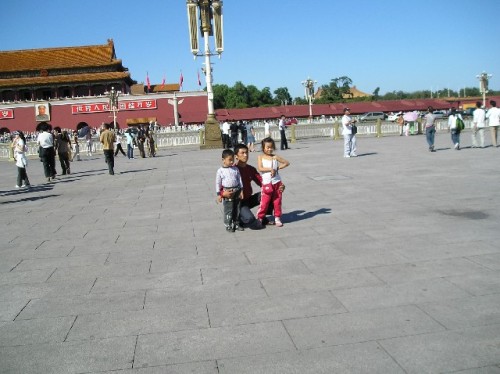 Beijing is the modern political and administrative center of China. It is laid out in concentric circles, the innermost being the Forbidden City and the surrounding Imperial City. A giant portrait of Mao hangs over the Gate of Heavenly Peace, which opens out on to Tiananmen Square, the world's largest public gathering place holding over a million people. Chairman Mao's portrait presides over the Square, across from Memorial Hall, where the body of the1949 founder of the People's Republic is entombed. On a drizzly weekday there were long lines of people waiting to pay their respects to the leader. A towering monument to the Heroes of the People, a granite obelisk honoring those who died in the Communist Revolution, is a prominent landmark of the Square.