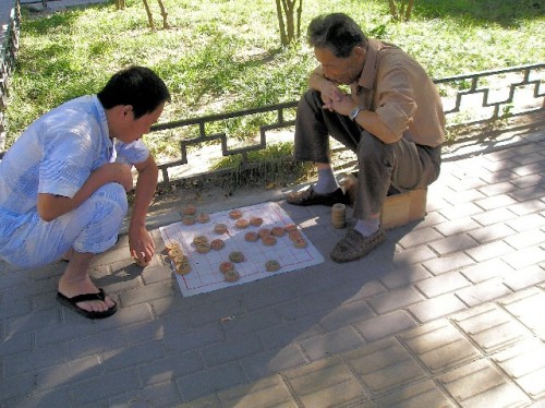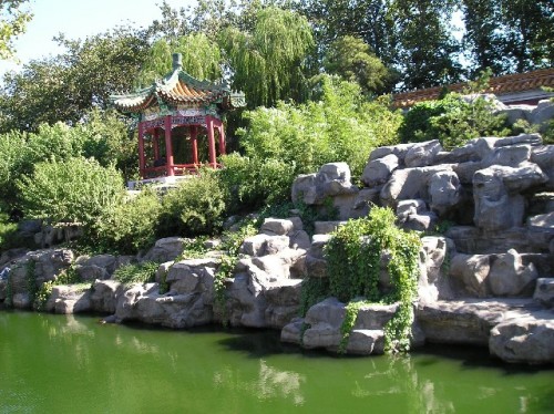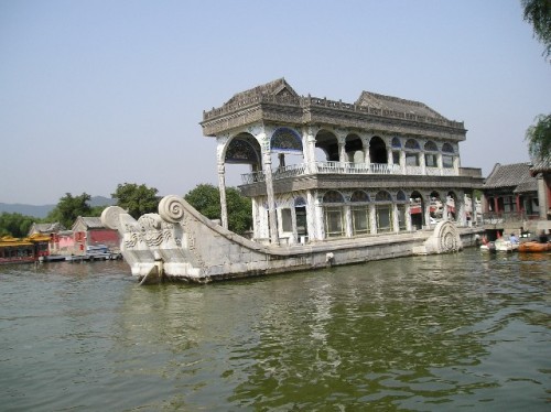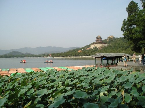 The afternoon excursion to the Summer Palace, 20 km northwest of Beijing, was delightful. The approaching Autumn Festival, the second largest after New Year's, combined with the weekend created a festive buzz on the roads. Out of their bike baskets vendors sold moon cakes special to the festival and symbolizing family reunion; wedding processions of cars decorated with flowers and balloons marked this as the lucky day for marriage, while red, the color of good fortune, dotted the cityscape.