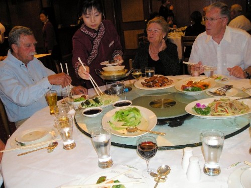 The New World Hotel across from the New World Trade Center was the setting for our dinner. We went to a restaurant specializing in Peking duck and featuring dishes all made from duck. Also, through our local guide we had an opportunity to order personalized seals. We had a choice of either a zodiac animal in jade, based on birth year, or double dragons playing with a "pearl", carved out of longevity stone that resembles brown marble. The name is carved both in Chinese and in Western letters at the bottom of the seal, which comes with a pad of red ink, the lucky color. I ordered the tiger zodiac symbolizing protection for my son and the dragons representing longevity for myself.
