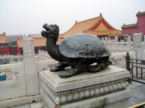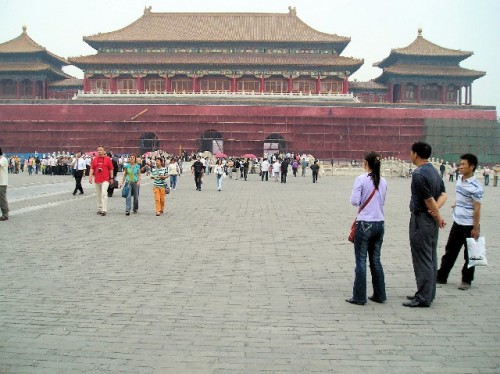 Much of the Forbidden City was under restoration. We walked around courtyards, admired ornate roof constructions with curved ends and fanciful corner structures with dragon motifs, and crossed over an inordinate number of thresholds built to keep evil spirits from entering the buildings. According to folklore, evil spirits are tiny and cannot step over the low thresholds. In the Forbidden City, where commoners were kept out for nearly 500 years, being a concubine to the emperor was a coveted position. One emperor had 3000.