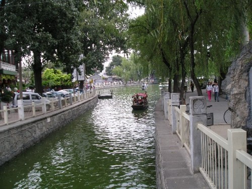We stopped for lunch at the home of a professional painter, who lived in an old home with his wife and teenage daughter. His studio was a sectioned-off corner of the small living/dining area. With a miniature rolling pin we rolled out small pieces of dough and learned how to make dumplings. After lunch we viewed his portfolios of traditional brush paintings on silk, as well as contemporary renditions. I bought a monochromatic landscape of varying green hues with two white cranes signifying longevity.
