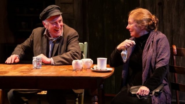 The dingy, filthy kitchen is in a vile state because the woman of the house, the unloved wife of cantankerous old Tony Reilly (Jeffrey DeMunn), passed away several years ago. His gawky almost catatonic son Anthony (James McMenamin) skulks about. The newly widowed neighbor Aiofe Muldoon (Deborah Hedwall) drops by swathed in a shawl against the generally dank weather. The widowed neighbors share a spot of tea and sympathy.