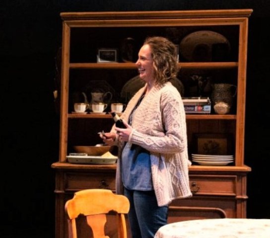 There is discussion of the dearly departed as well as legacy plans for the son and daughter of the elderly and infirm neighbors. Much of this initial dialogue is difficult to follow. The director Karen Allen has them seated around the table. The flow of the conversation is to each other and not projected out to the audience.
