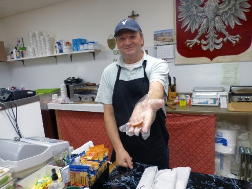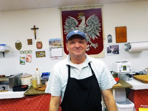 He pointed out the freezer stocked with pierogis and the selection of smoked fish.