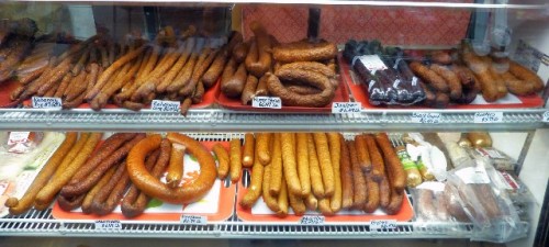 Each slice of sausage, Juniper, Cherry Smoked, Gypsy, Home Style, Black Forest, Hunters came with a story. Some were best to grill, others sliced for sandwiches or to snack. The prices ranged from $5.99 to $7.50 a pound.