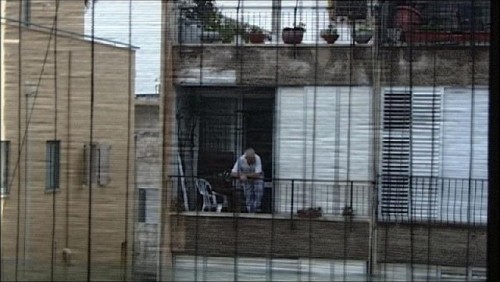 In "LÃ Bas," for example, our view on Tel Aviv is a strange one. Akerman creates a subjective response to a city and a political situation, not an objective analysis. The main character, Akerman again, is a foreigner with a temporary commission in Israel, subletting a furnished flat. Most of the film's action takes place in the apartment, a shadowy realm where slatted blinds are constantly drawn. It is through these blinds that the main character views her new environment, looking for life on other balconies in other buildings. When she does eventually venture out (for cigarettes, as she's been making do with food left behind by the apartment's owner) she hears of a fatal bombing from the tobacconist. This news makes her seem even more isolated and threatened, though ultimately she realizes she has a built-in escape plan: as a foreign visitor, she has a life to return to elsewhere. Her stay will be a temporary one. The film questions the ultimate effect of any one individual on such a complex and war-scarred situation; will her visit even leave a trace?