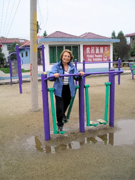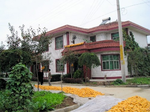 Our overnight stay in the farming community of Hu Xian was yet another highlight. Taking only hand luggage, we split into four groups of four to spend the night in this village of 900 people. Although our hosts did not speak English, we received a warm welcome upon arrival. Piles of yellow corn spread to be shucked blanketed the asphalt road to our hosts' home in the new section of the village renovated and sold by the government. My group stayed in a two-story house, where three generations lived: father, mother, daughter and her two children, a 15-year-old girl and an 11-year-old boy. Villagers are allowed two births. Those that exceed the limit pay a penalty of about $500.
