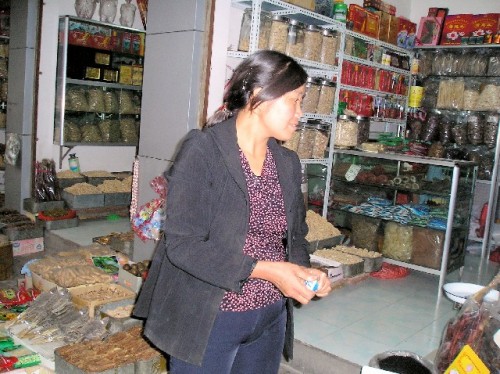 Over lunch we enjoyed a noodle-making demonstration and went on to the wholesale herbal medicine market. Among the selections were dead ants for arthritis, fried silk worms for upset stomach, a variety of nuts for shiny hair, and turtle shells to make soup for kidney ailments. Villagers cultivate the medicines to sell to pharmacies and hospitals. The government owns the market and rents the stalls. Common belief is that Chinese medicine takes longer to take effect, but has no side effects unlike Western medicine.