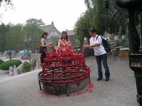 Susan looked forward to showing us her hometown, where she had also attended one of its 43 universities. Shortly after we arrived at our hotel, we participated in a tai chi demonstration by a Master, followed by a visit to the Wild Goose Pagoda. Thirty monks live in the 1100-year-old Buddhist landmark. People light incense sticks and place them in a bronze urn, sending their wishes to the gods with the rising smoke. 30% of Chinese, mostly Buddhists, practice some form of religion.