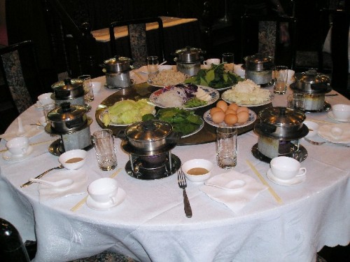 A Mongolian hot pot dinner topped off the evening. We each received individual containers of hot broth, to select and cook from the variety of meats and vegetables that were placed in the center. We then dipped each morsel in peanut sauce before popping it into our mouths. Watermelon, apples and pomegranates completed this fun meal. Before retiring for the evening, we walked by the musical fountain near the Pagoda. Dramatically lit jets of water synchronized to western classical music and Chinese pop tunes bounced up and down and changed directions, entertaining the crowds.