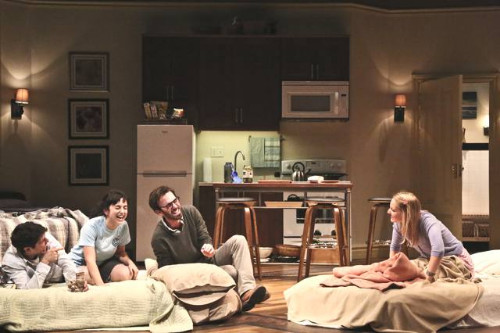 In the technical department the creative team led by director Shakman has his set designer John Arone, render a one-set, messy apartment; strewn with bed-sheets, blankets, and clothing that provide the look that twenty somethings just seem to relish. Lights by designer Elizabeth Harper deliver just the right amount of light in order to see the on stage action and the costumes of designer E.B. Brooks.