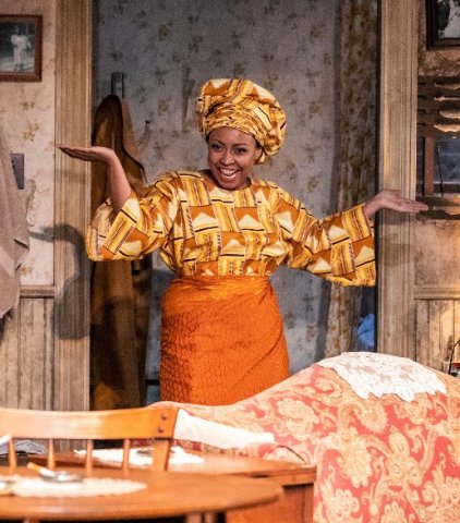 The play begins at 7AM with Ruth in a house coat making coffee. She has to get Travis up and ready for school. By 7:30 it is important that Walter Lee not be late for his gig as a chauffeur. Then Benethea adds to the morning confusion. Family routine is difficult to follow given chaotic staging and resultant cacophony. That overwhelms our appreciation of Masden's subtle, articulate and well crafted role as Ruth. Her responses prove to be the canary in the mine shaft of seismic events that threaten to destroy the family.
