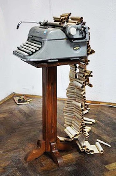 The Satu Mare Museum will present the exhibition. EIBAB’s website features the prize winning entries of 2010, which are quite spectacular: Antal Annamaria, Romania, won the Grand Prize with her artwork of an old typewriter perched on a pedestal, out of which a series, 30 or more, interconnected scrolls were flowing. The first prize went to Helen Malone, Australia, who submitted an art book in the form of a circular fan in black and white and large texts. The second prize was won by Salvador Menjibar, Spain, for his entry of an art book construction. Few limitations are set for submission and the 2012 exhibition should garner downright extravagant work!